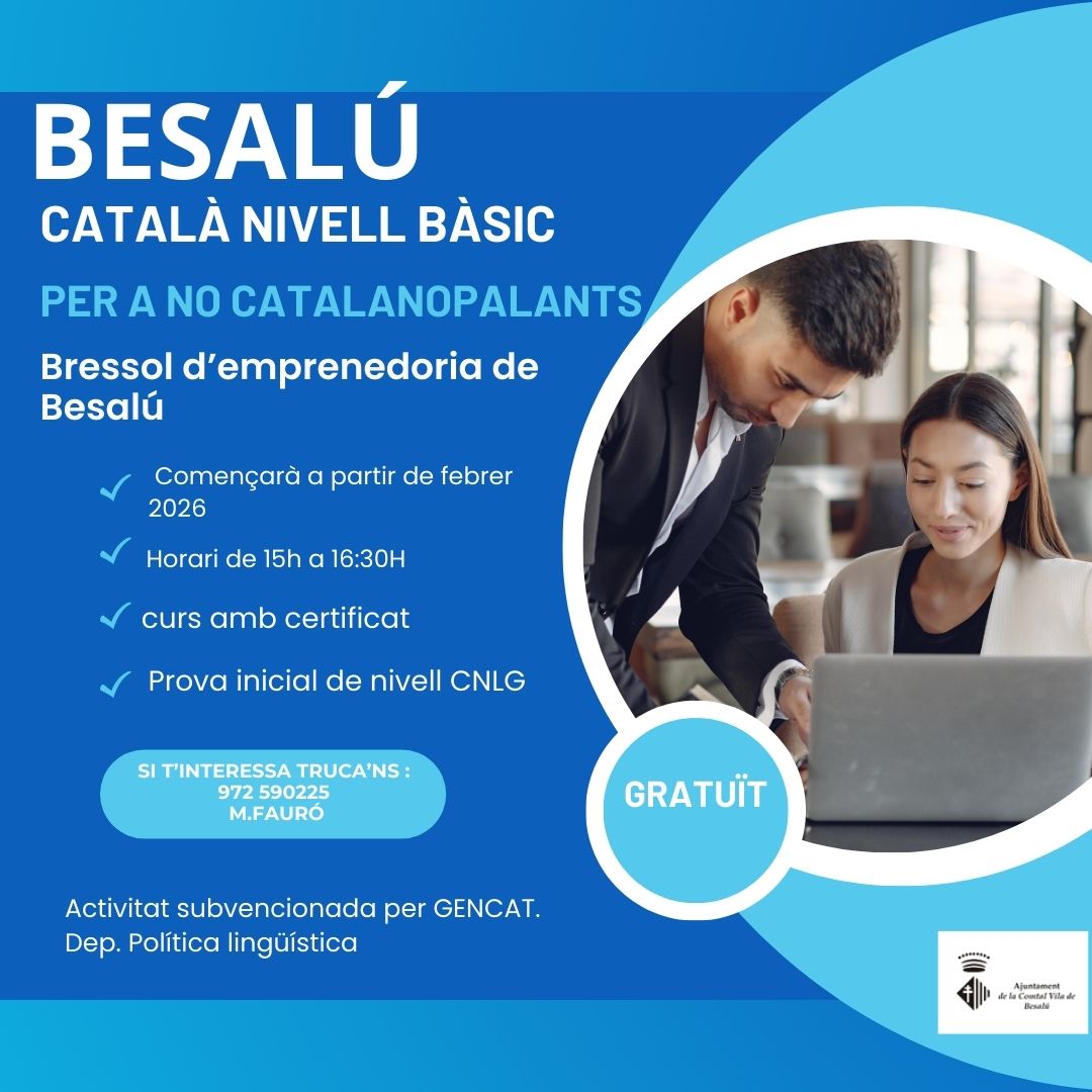 Nou curs de català nivell inicial per a no catalanoparlants a partir del febrer 2026. Inscripcions i informació a l’ajuntament de #Besalú