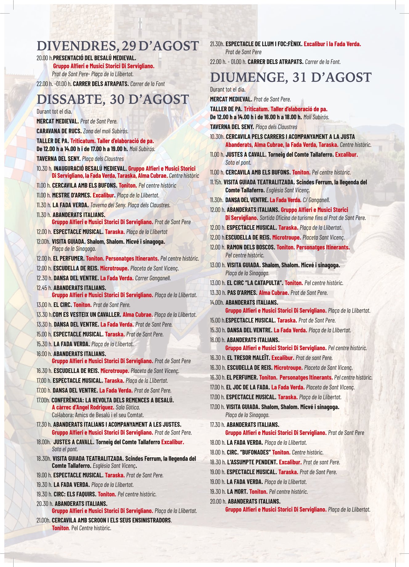 Besalú Medieval 2025 PROGRAMACIÓ. Un retorn al passat en un marc amb una singularitat única. Els dies 29, 30 i 31 d’agost Besalú us obre les portes a un món màgic…