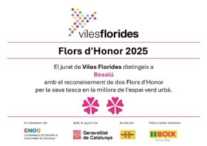 Besalú va participar el passat 3 d’octubre a la 14 Gala de flors d’honor de Viles Florides 2025 al magnífic entorn del Món Sant Benet, i va rebre dues flors per la seva dedicació a la millora dels espais verds urbans.