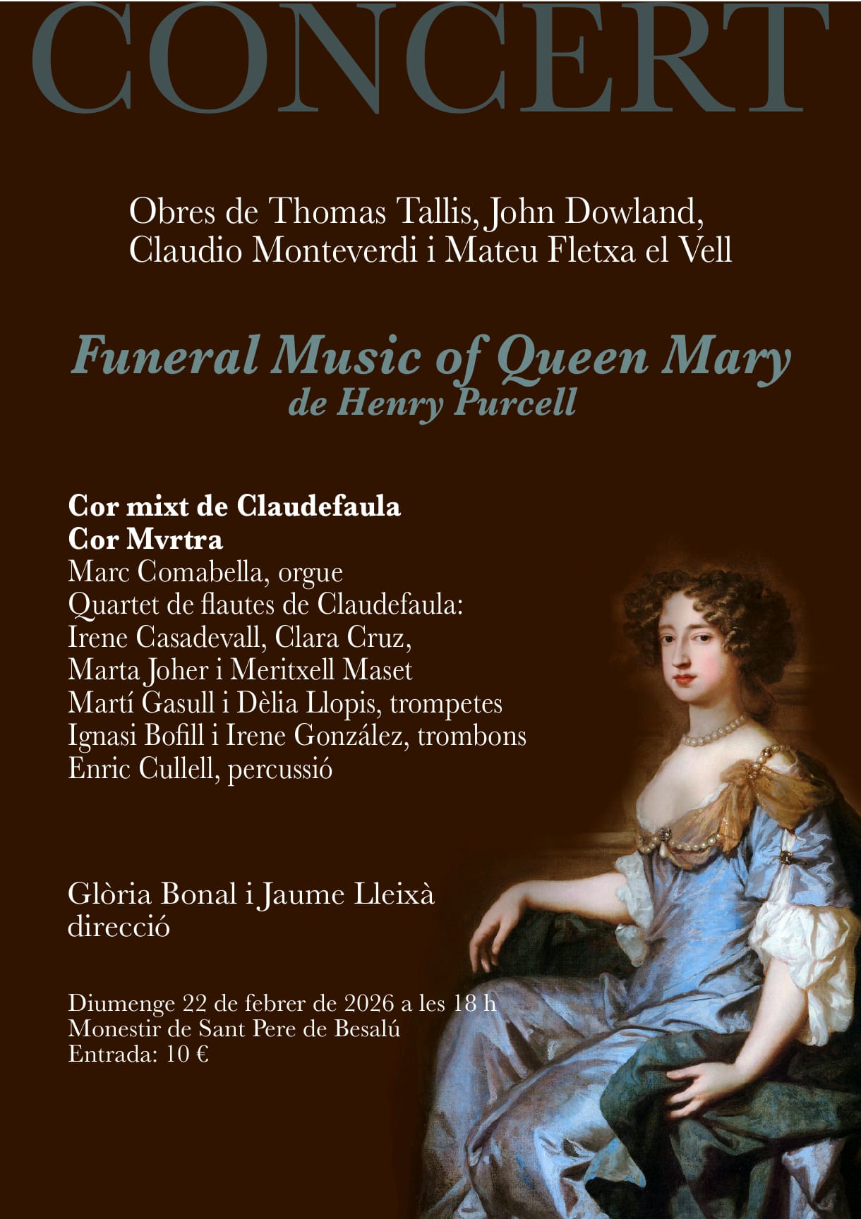 Concert ” Funeral Music of Queen Mary” de Henry Purcell. Diumenge dia 22 de febrer a les 18h al Monestir de Sant Pere de Besalú.