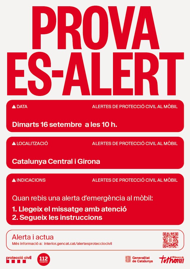 L’any 2023 va entrar en funcionament el sistema d’alertes de Protecció Civil al mòbil, ESALERT. Des d’aleshores se n’han fet diverses proves i s’ha activat en situacions