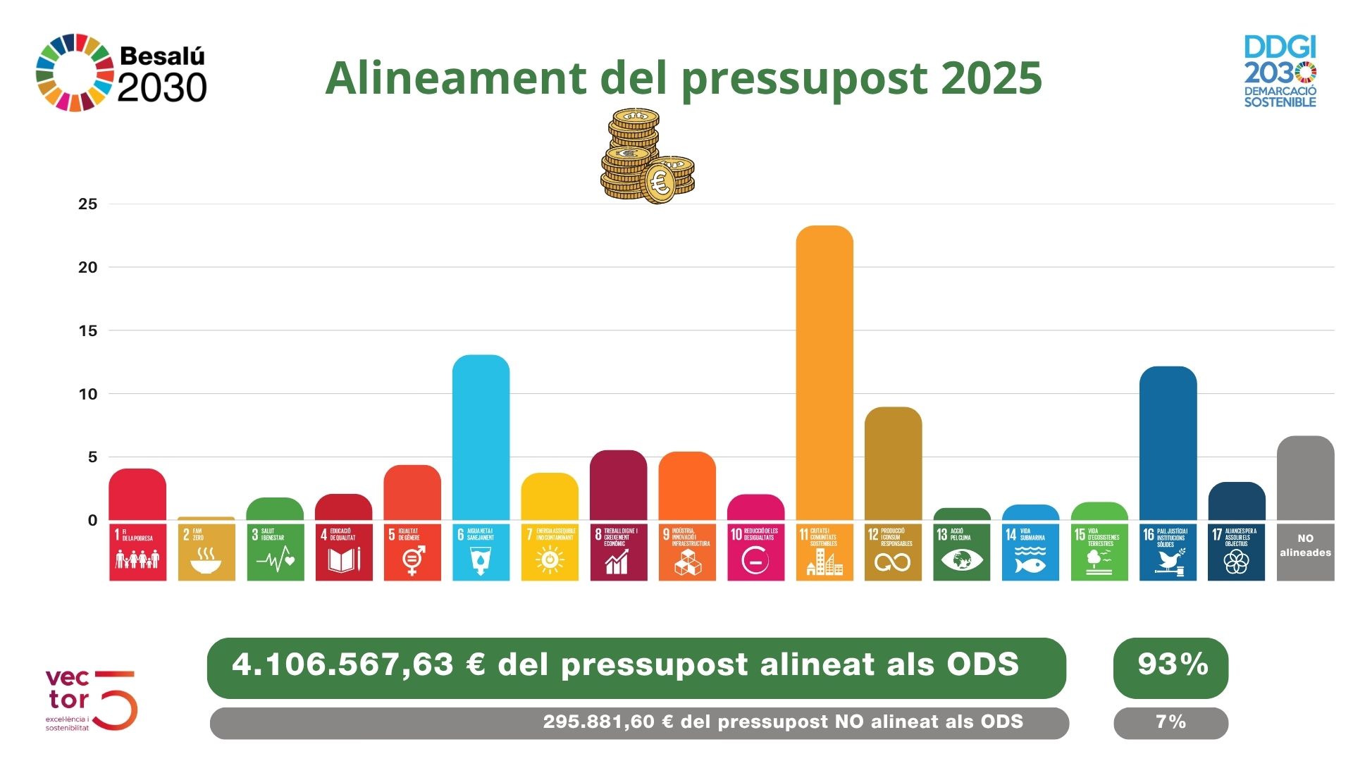 L’estudi també ha permès avaluar l’alineament del pressupost municipal 2025, del qual més del 90% (4 milions d’euros) es destina a actuacions relacionades amb els ODS.