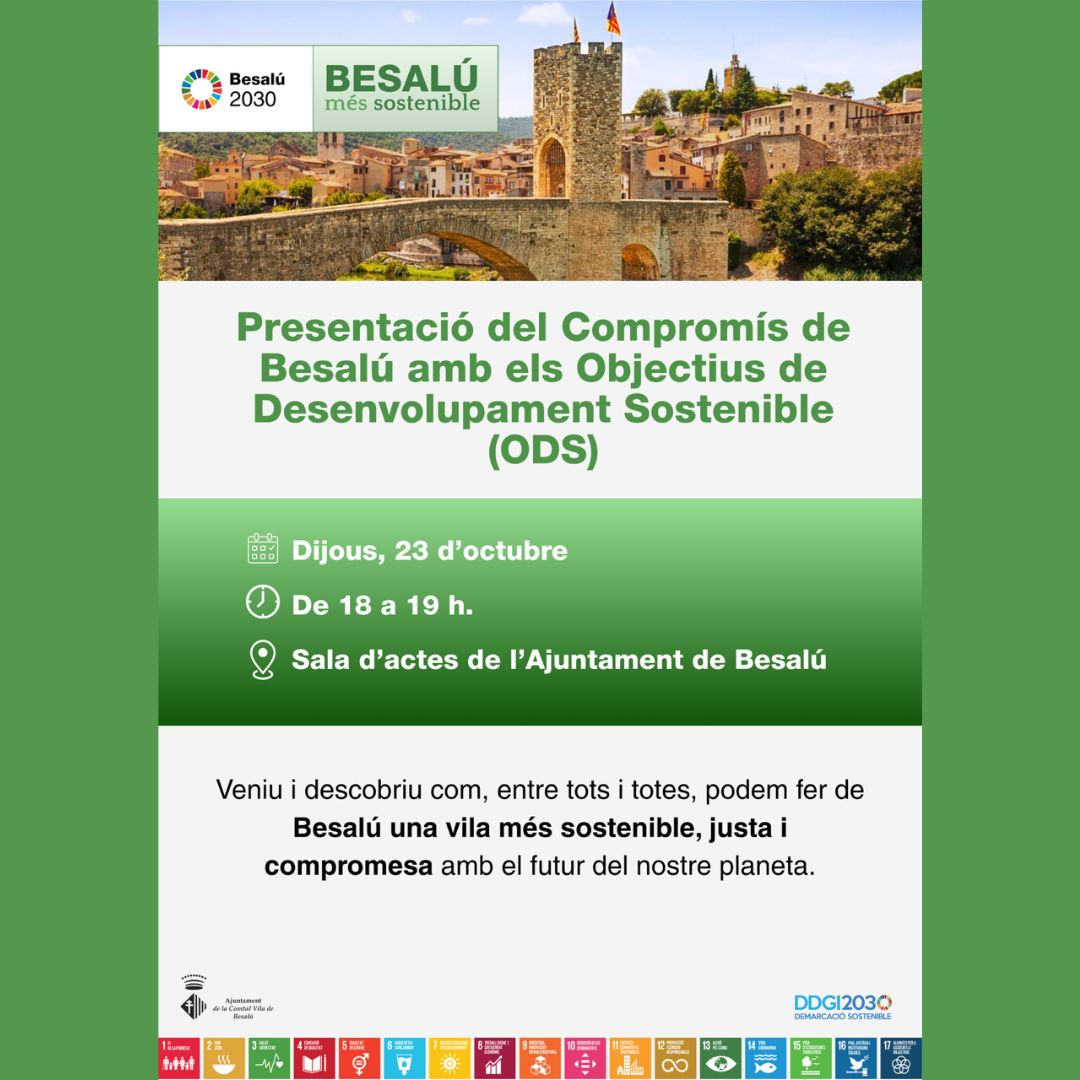 Presentem ” El compromís de Besalú amb els ODS (Objectius de Desenvolupament Sostenible). Dijous 23 d’octubre a les 18h a la Sala d’Actes de l’Ajuntament.Vine i suma’t al canvi!